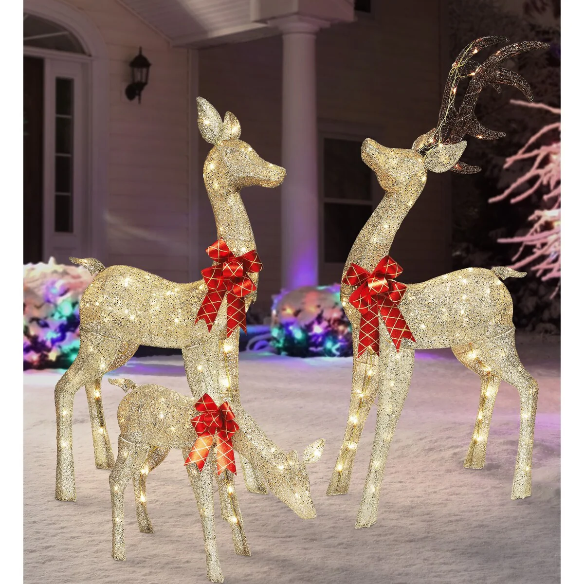 - SET OF 3 DEER FAMILY: Includes a Buck, Doe, and a Fawn to light up your yard for the holidays
