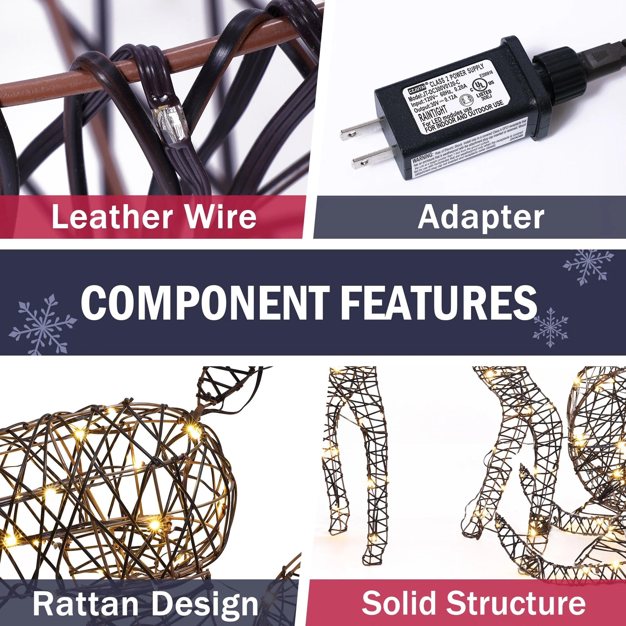 - Convenient single-plug - the reindeer and sleigh figures are displayed together and connected by light jacks to the main plug (cord length: 16.4-feet)