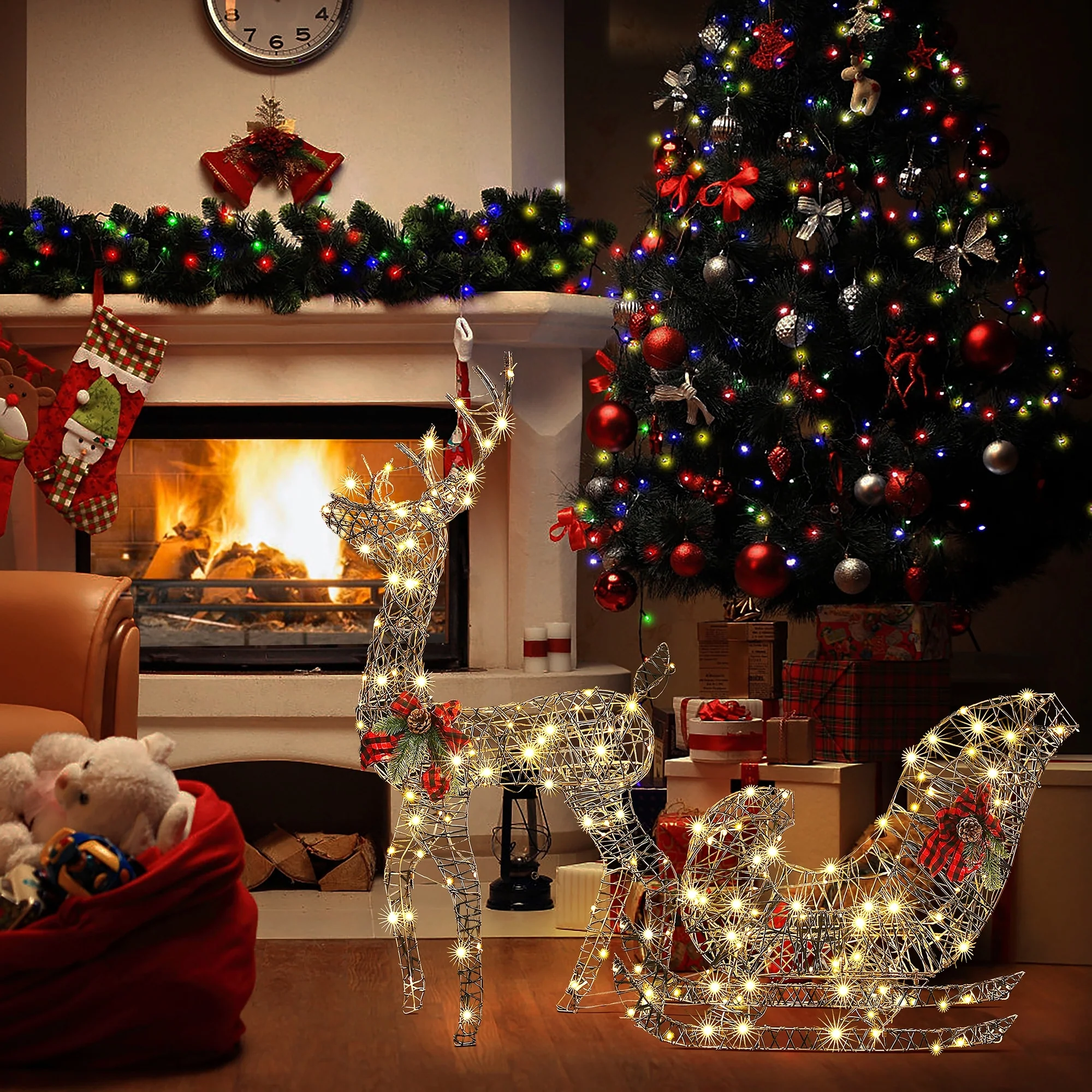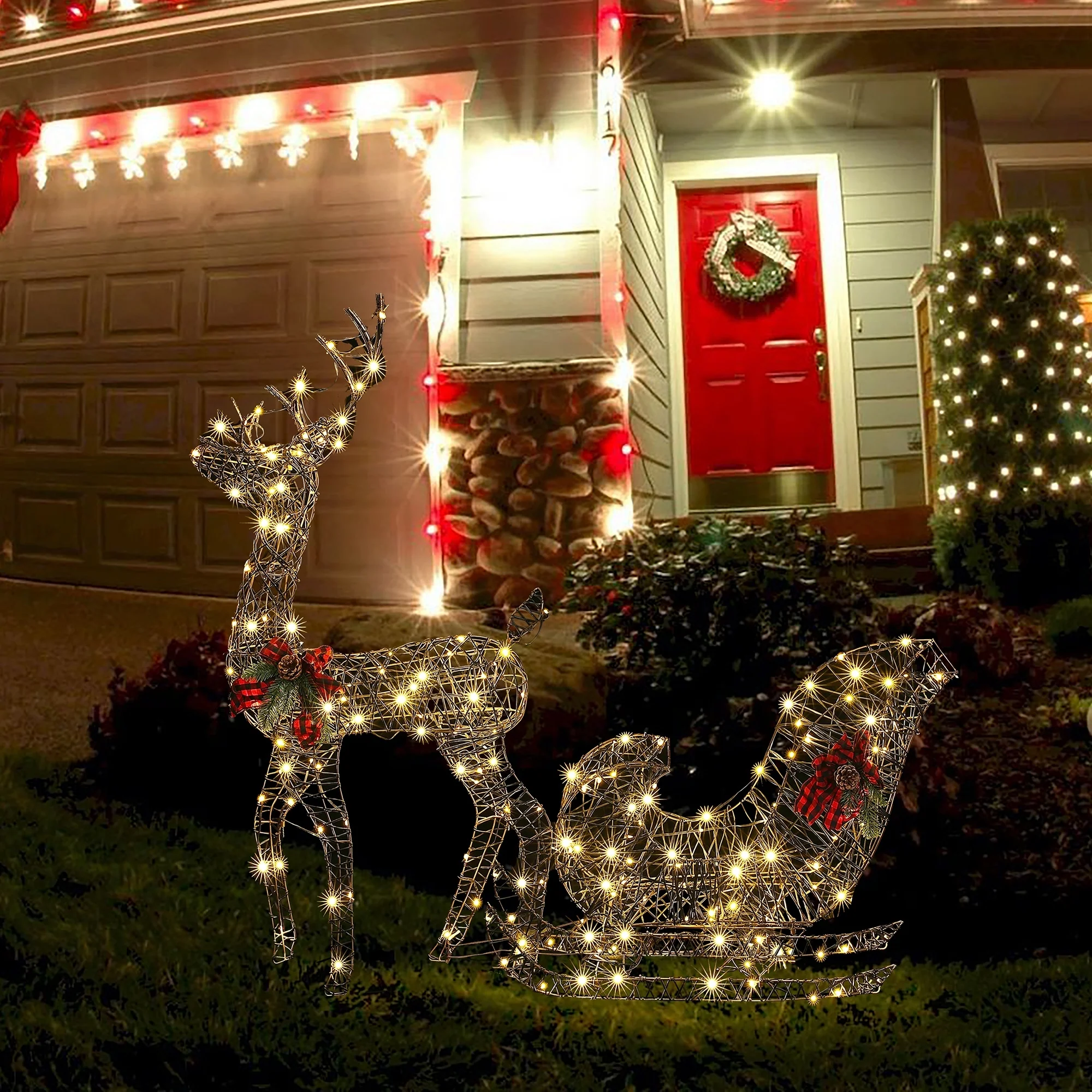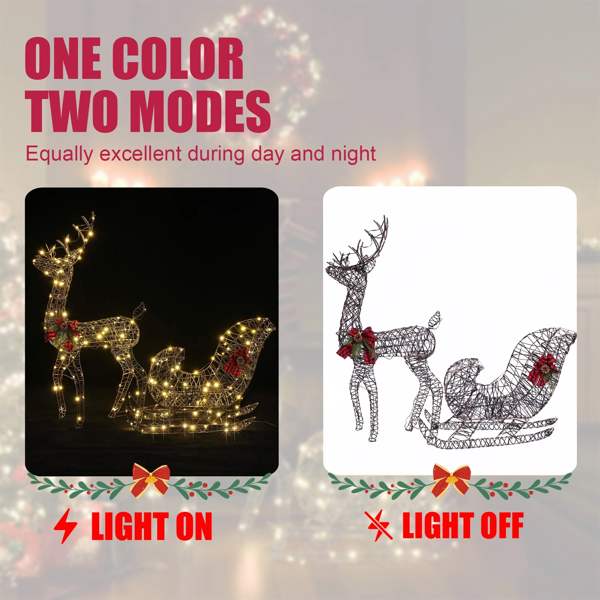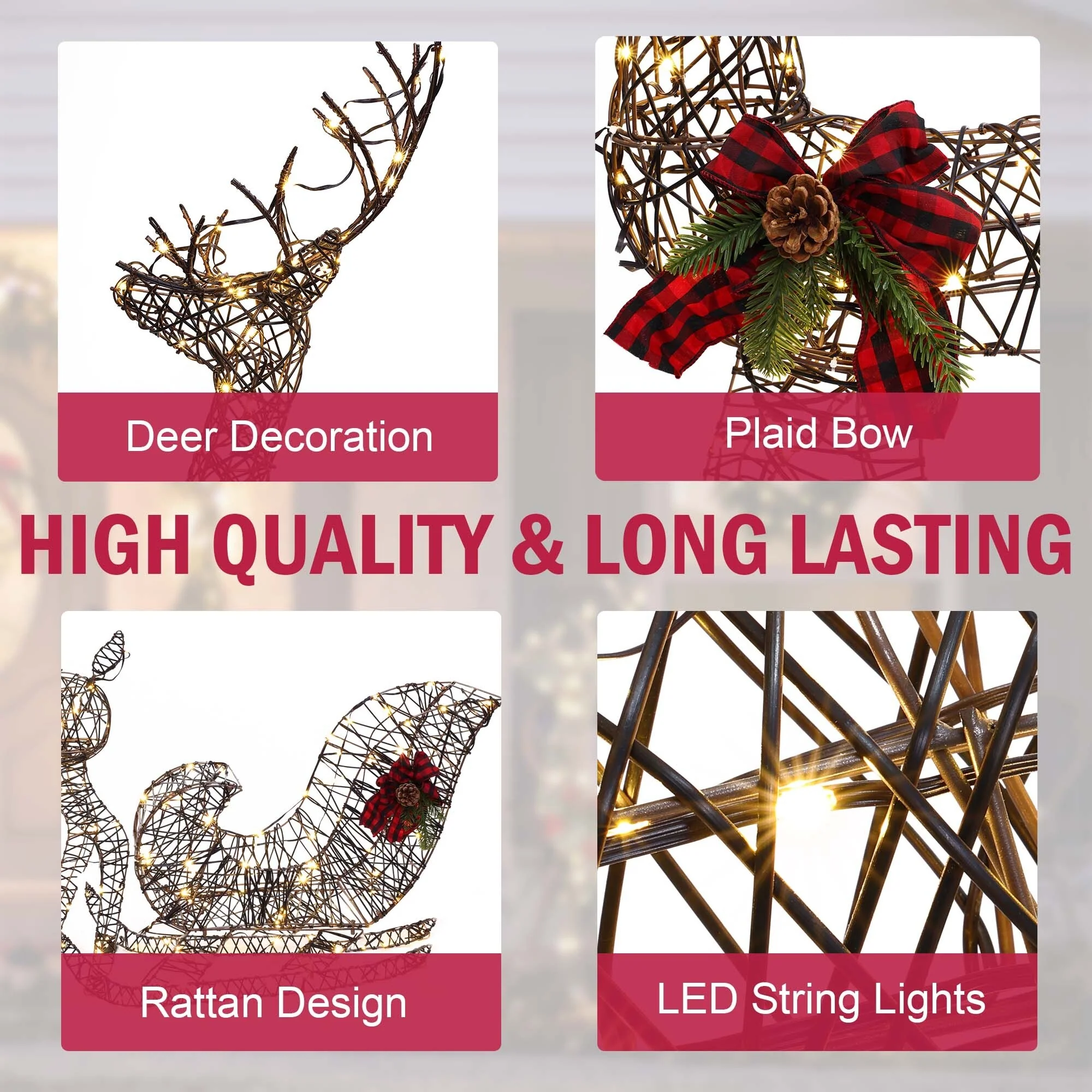 - Meticulous craftsmanship - the reindeer and sleigh figures are carefully designed with lifelike features and festive accents, adding charm to your decor