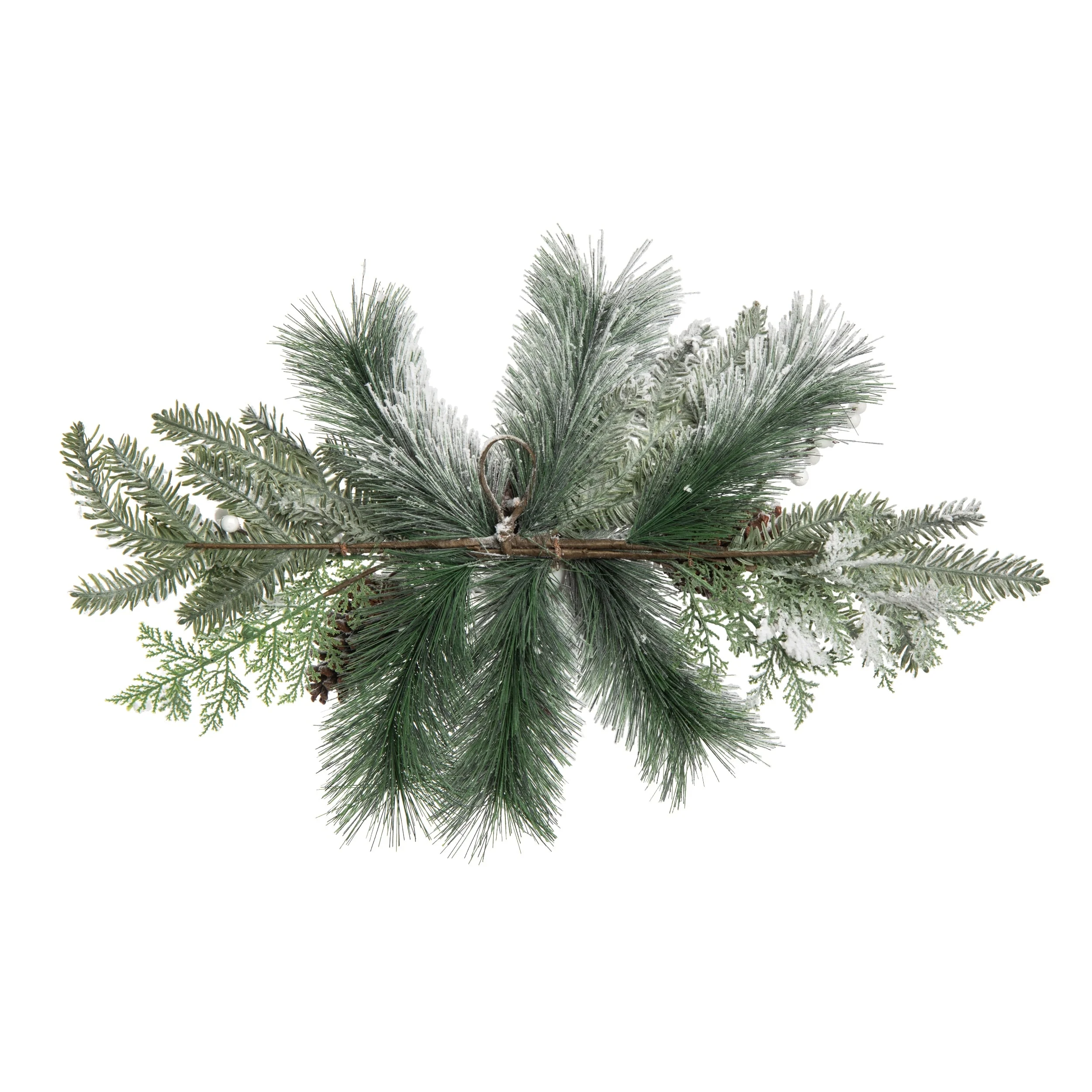 Transpac Artificial 26 in. White Christmas Frosted Evergreen Centerpiece with Pinecones