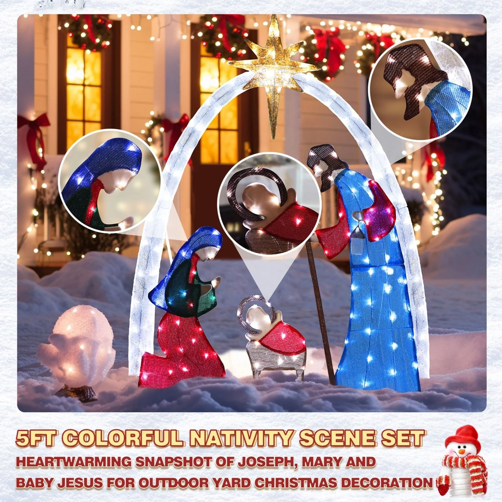 - 【Vivid Characters】The nativity scene is all woven from fabrics, which are definitely vivid. You can make out exactly what you're looking at when it's lit up. Seeing such a gorgeous and charming light up nativity sets in cold winter day, both you and passers-by will be warmed.