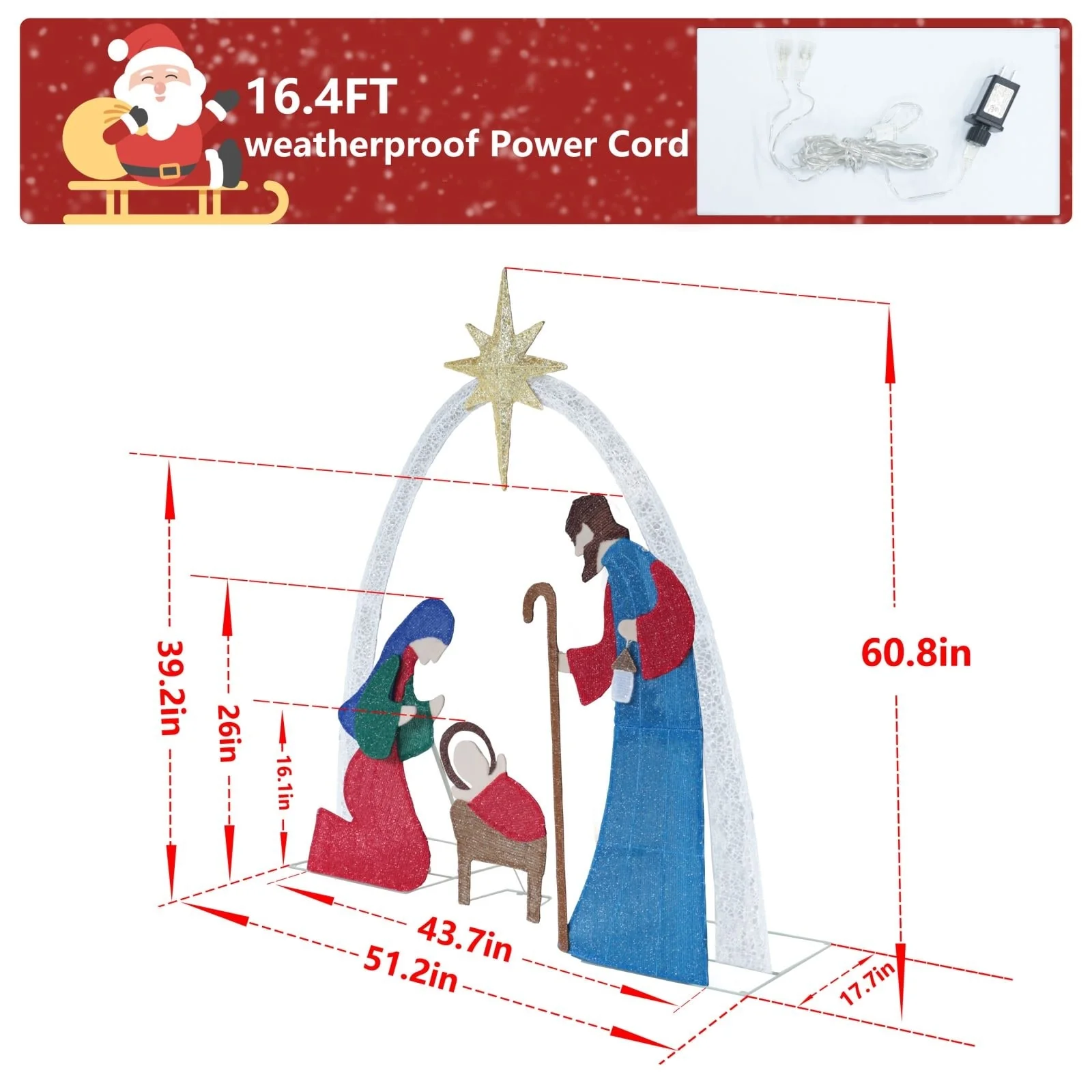 - 【Easy to Install and Disassemble】The outdoor nativity set is super easy to install. Each part is matched properly, so it's very easy to fit on without tools. When the festival is over, you can also quickly dismantle it thus it can be stored flat for minimal space.