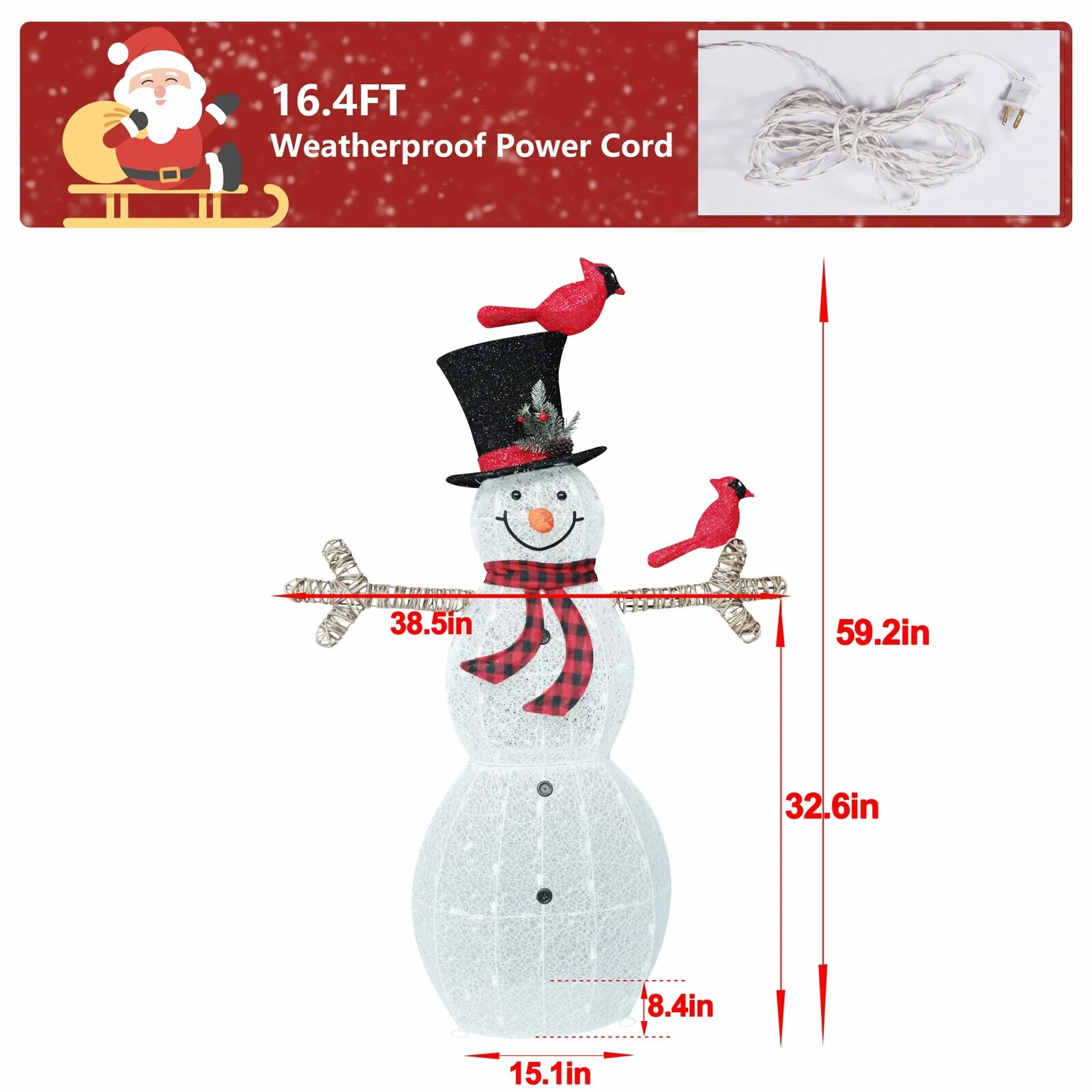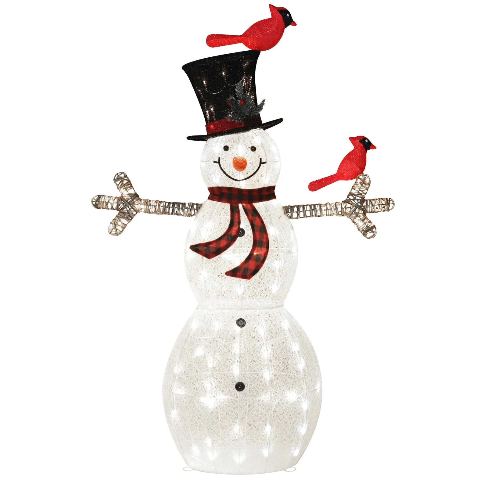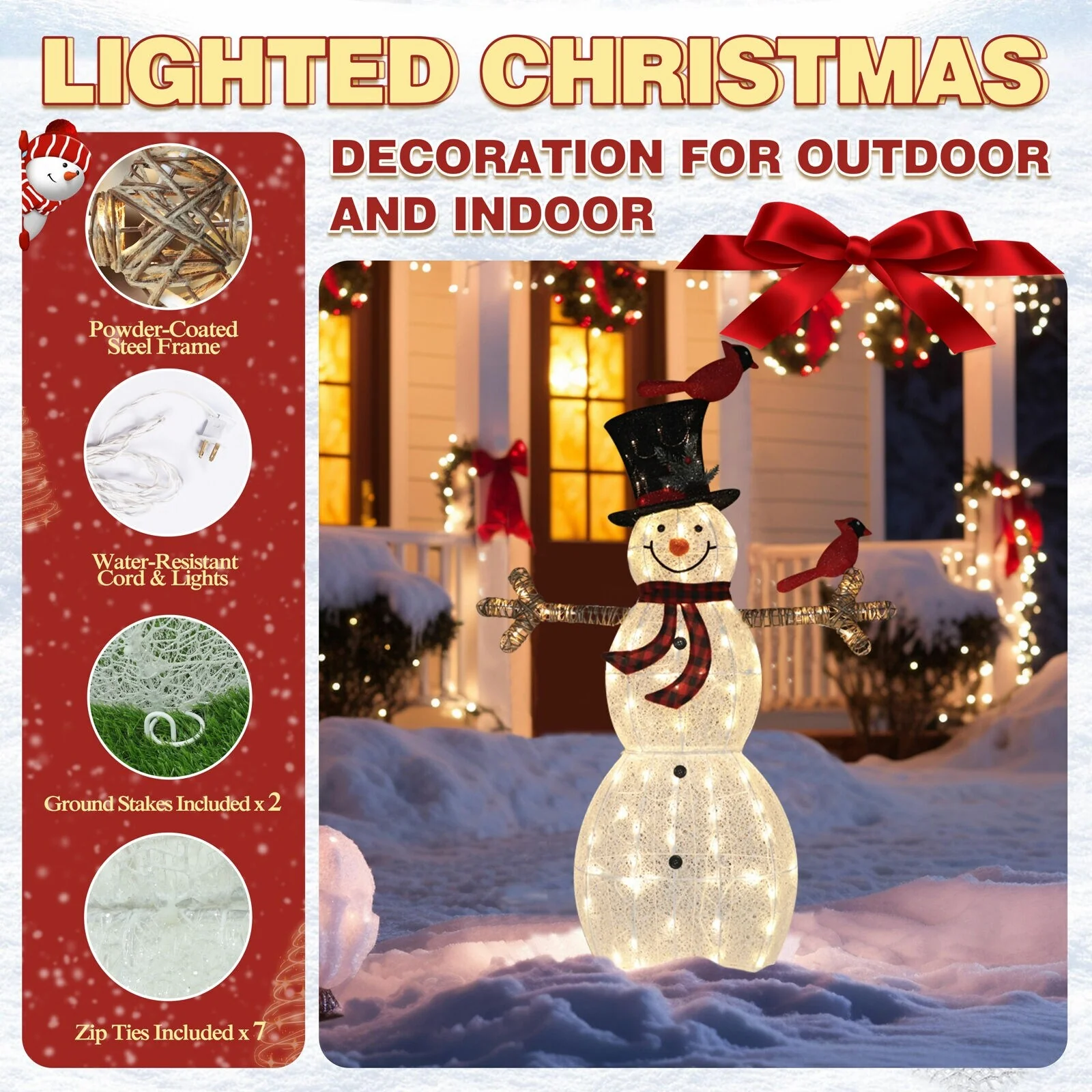 - Exquisite Accessories: Delight in the details with a red & black scarf, birds, and hat that enhance the overall appeal of this lighted snowman outdoor decoration.