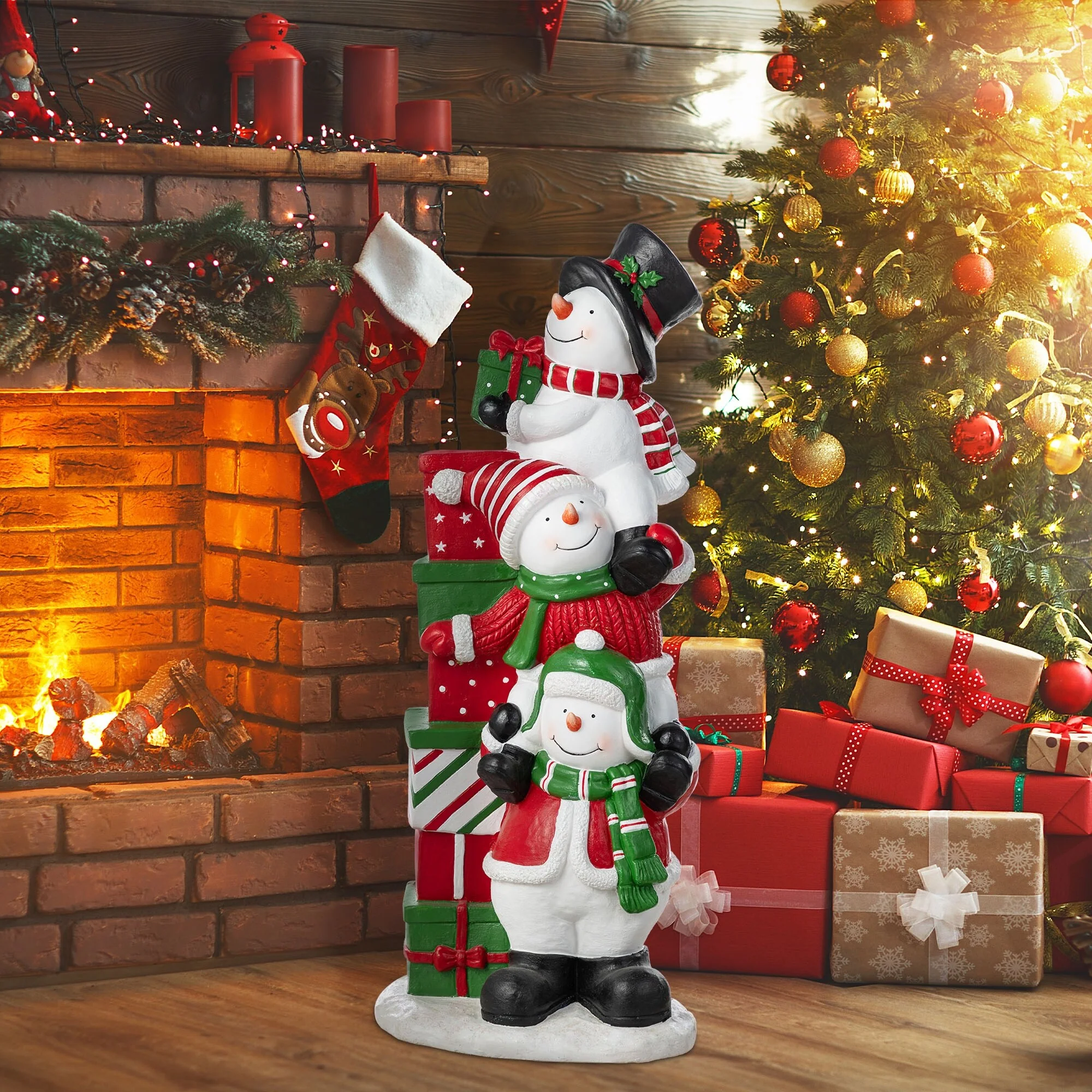 Glitzhome 35.25"H Christmas Resin Stacked Snowman Porch Decor