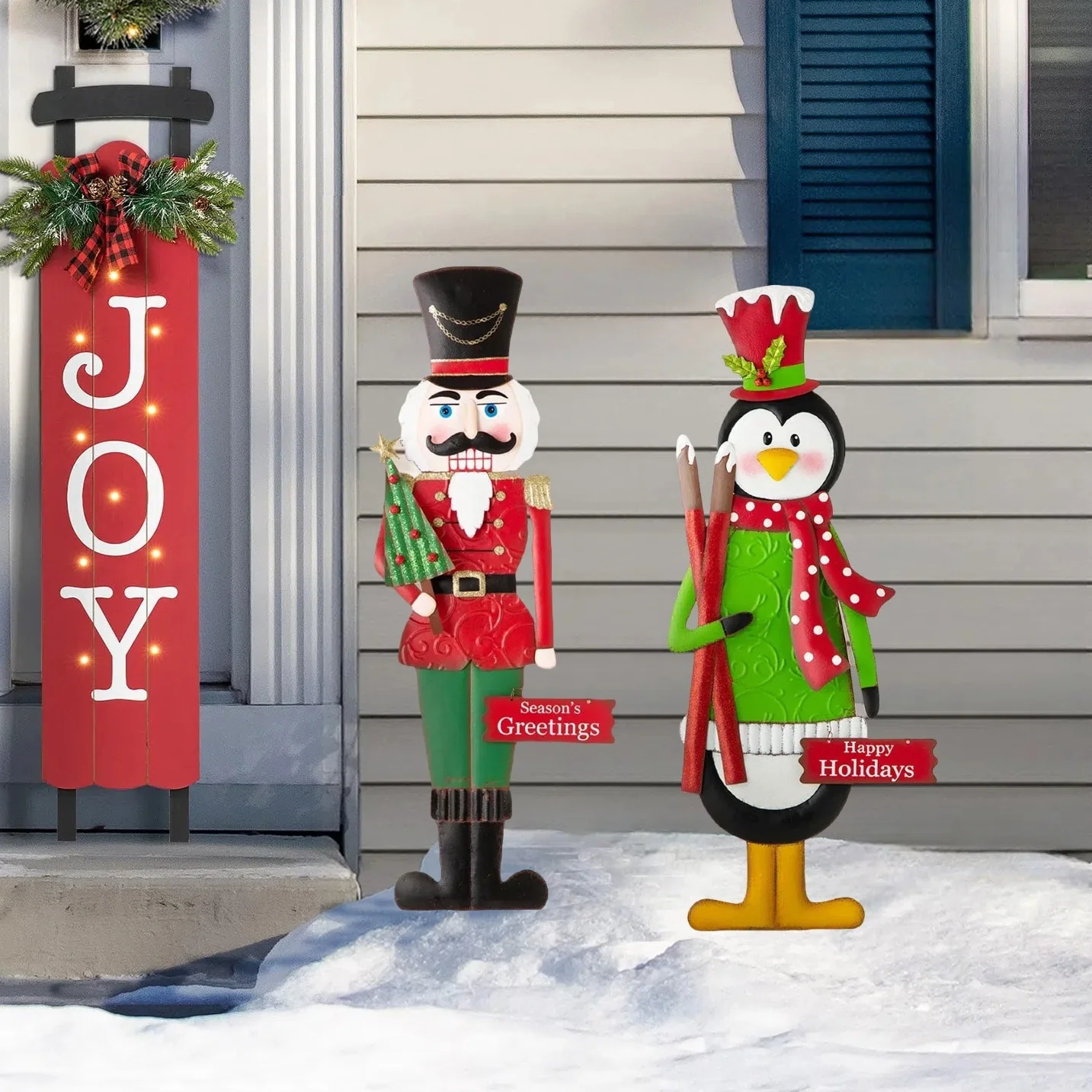 Glitzhome 36"H Christmas Metal Penguin Nutcracker Yardstake Standing Sign Wall Decor