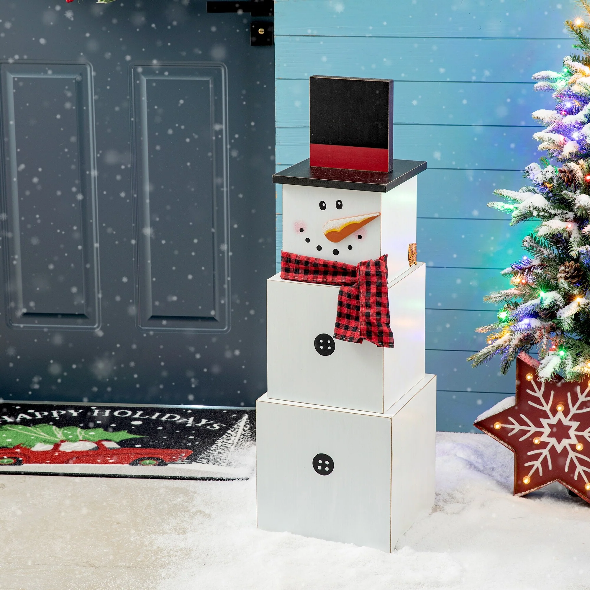 Glitzhome 36"H Wooden Double-Sided Snowman/Scarecrow Porch Decor - Multi-Color