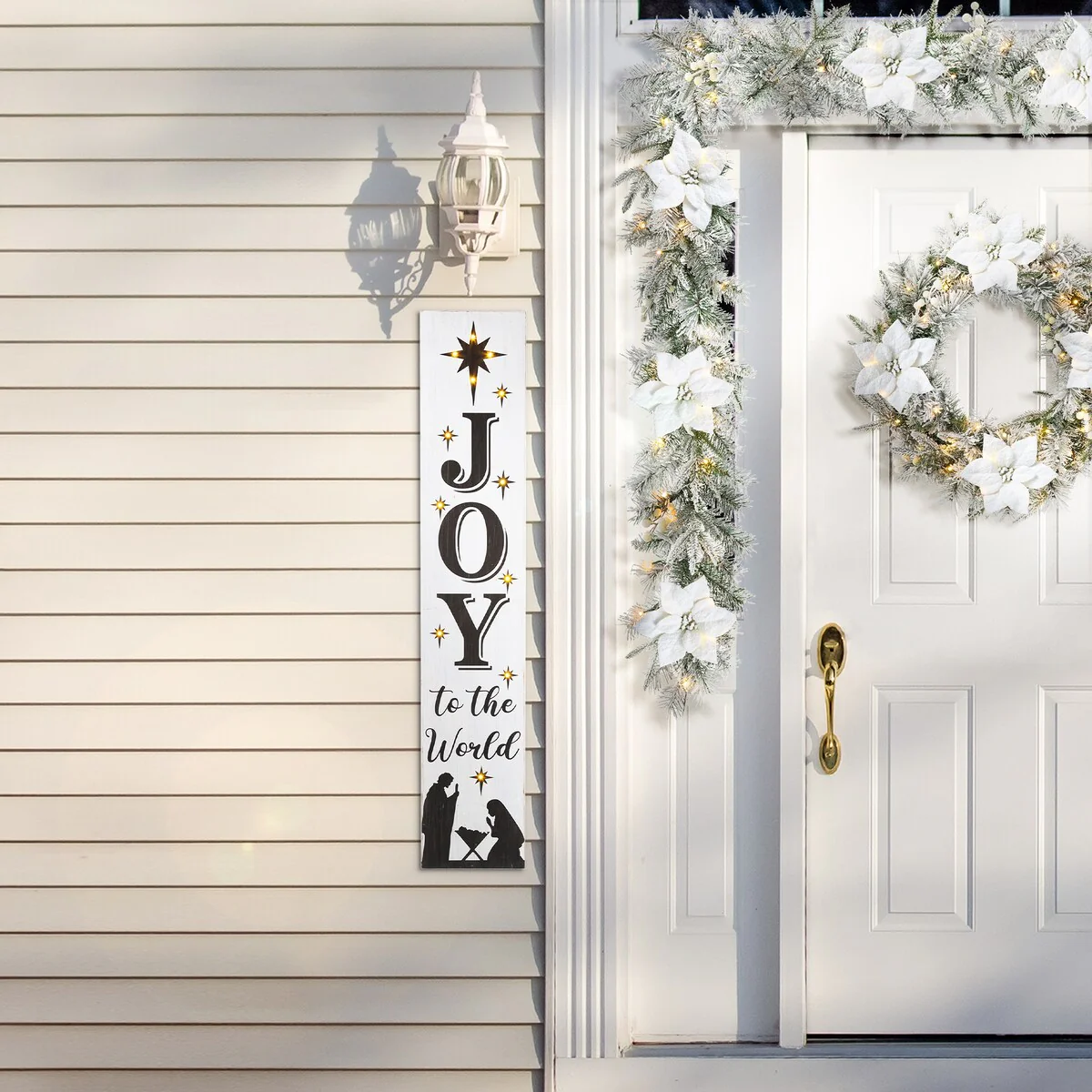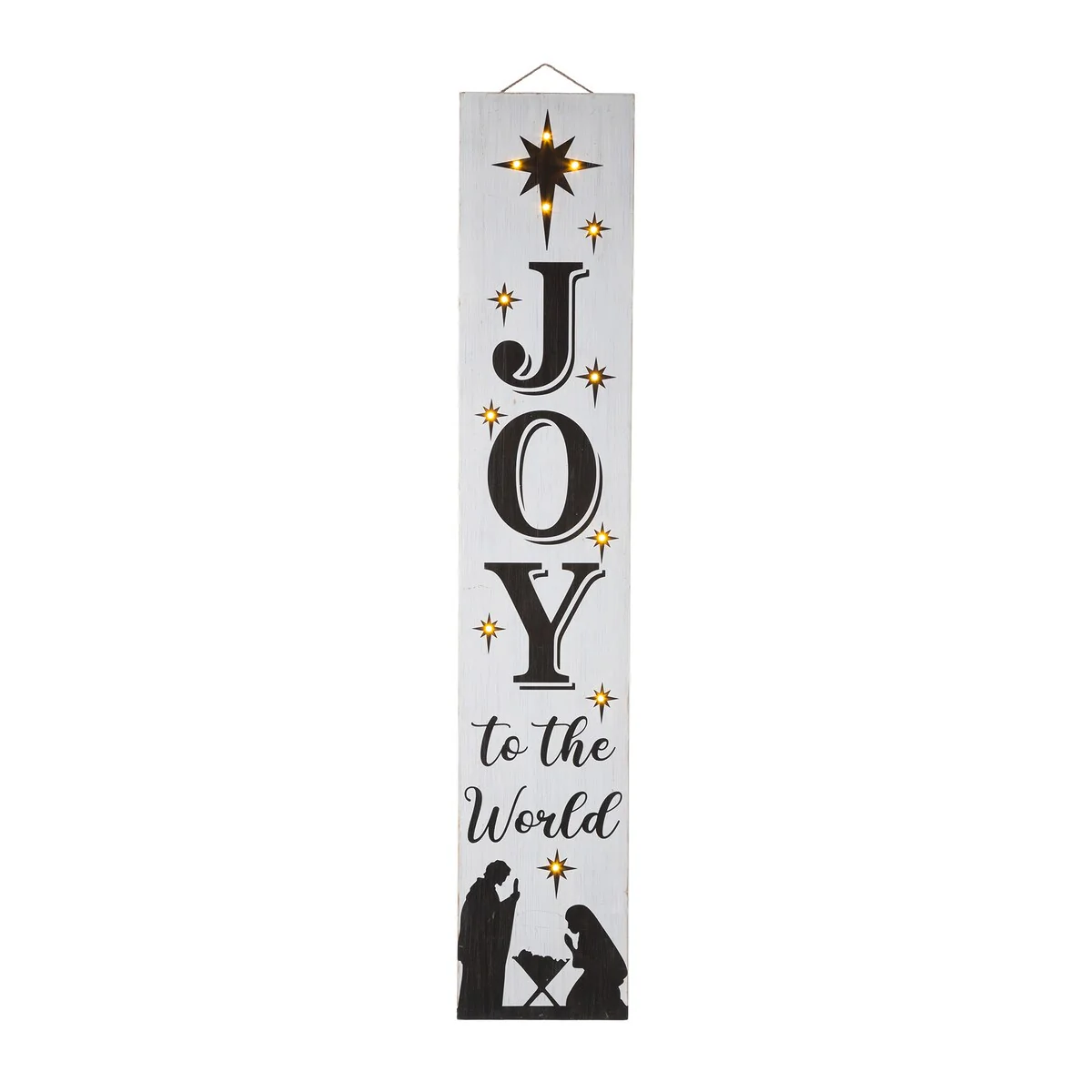 Glitzhome 42"H Lighted "JOY" or 60"H "PEACE" Wooden Nativity Porch Sign