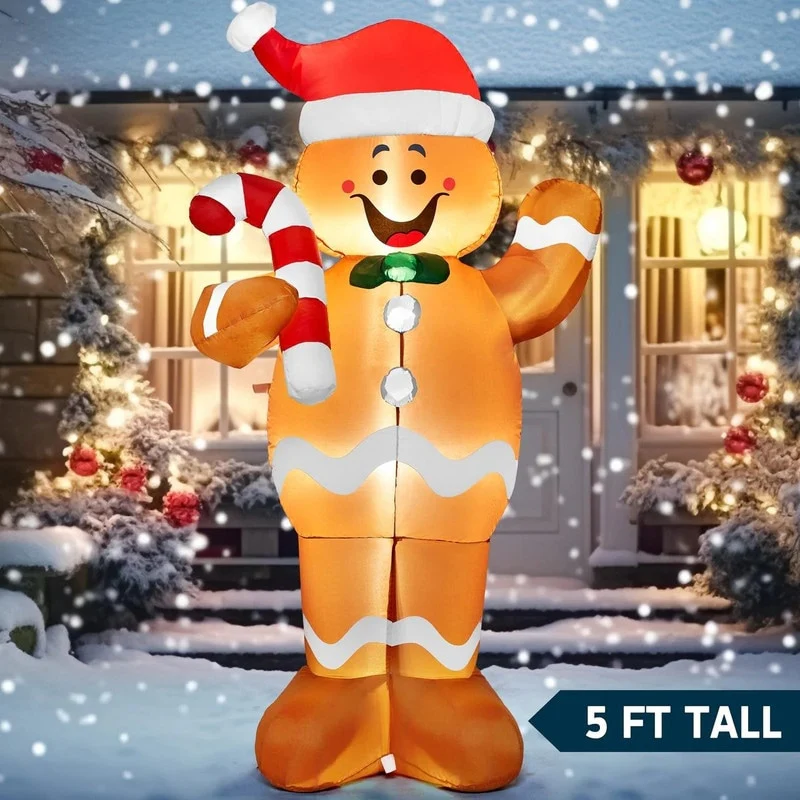 Joyfy 5ft LED Gingerbread Man Inflatable for Xmas Party Décor