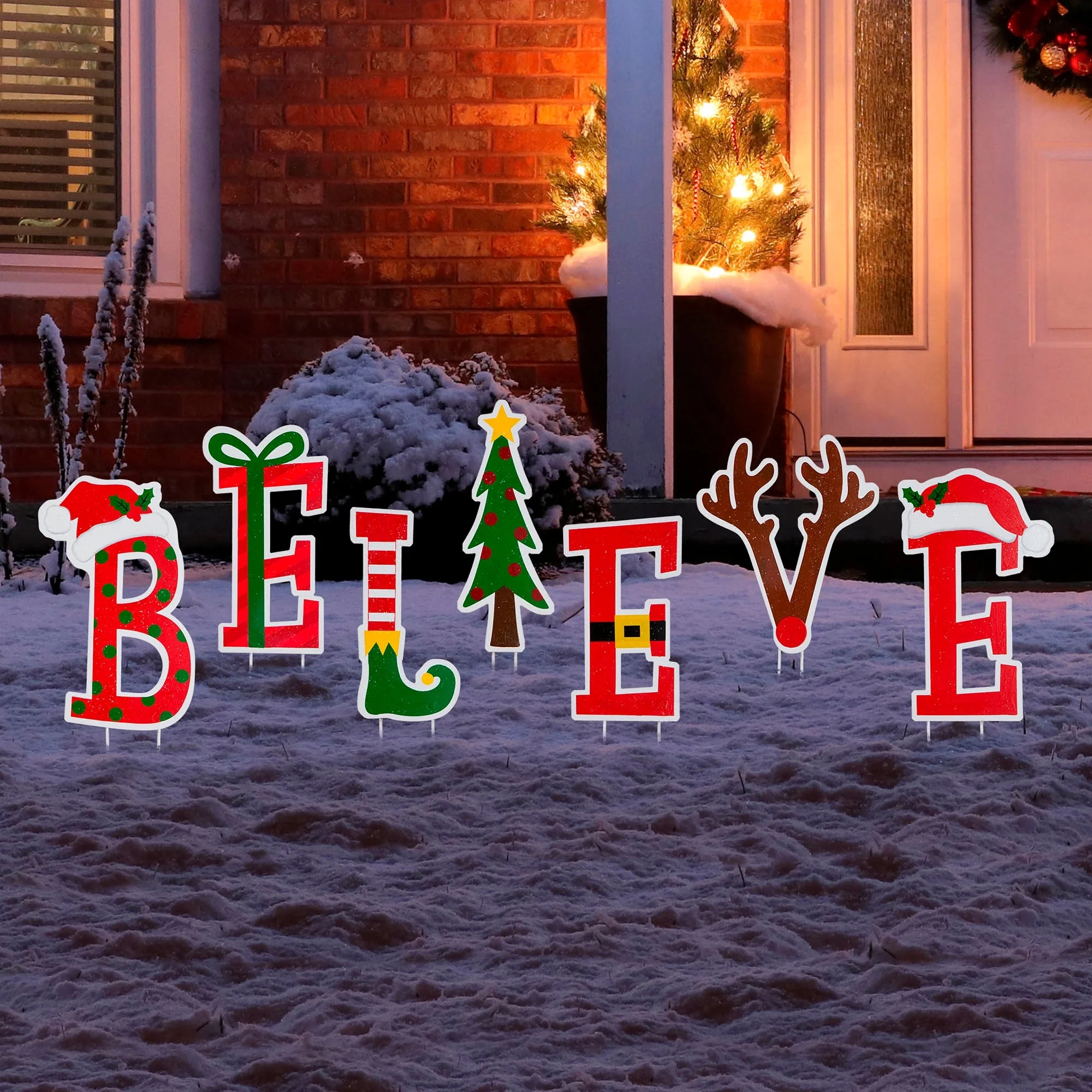 Glitzhome Set of 7 BELIEVE Yard Stake or Wall Decor (2 Functions)