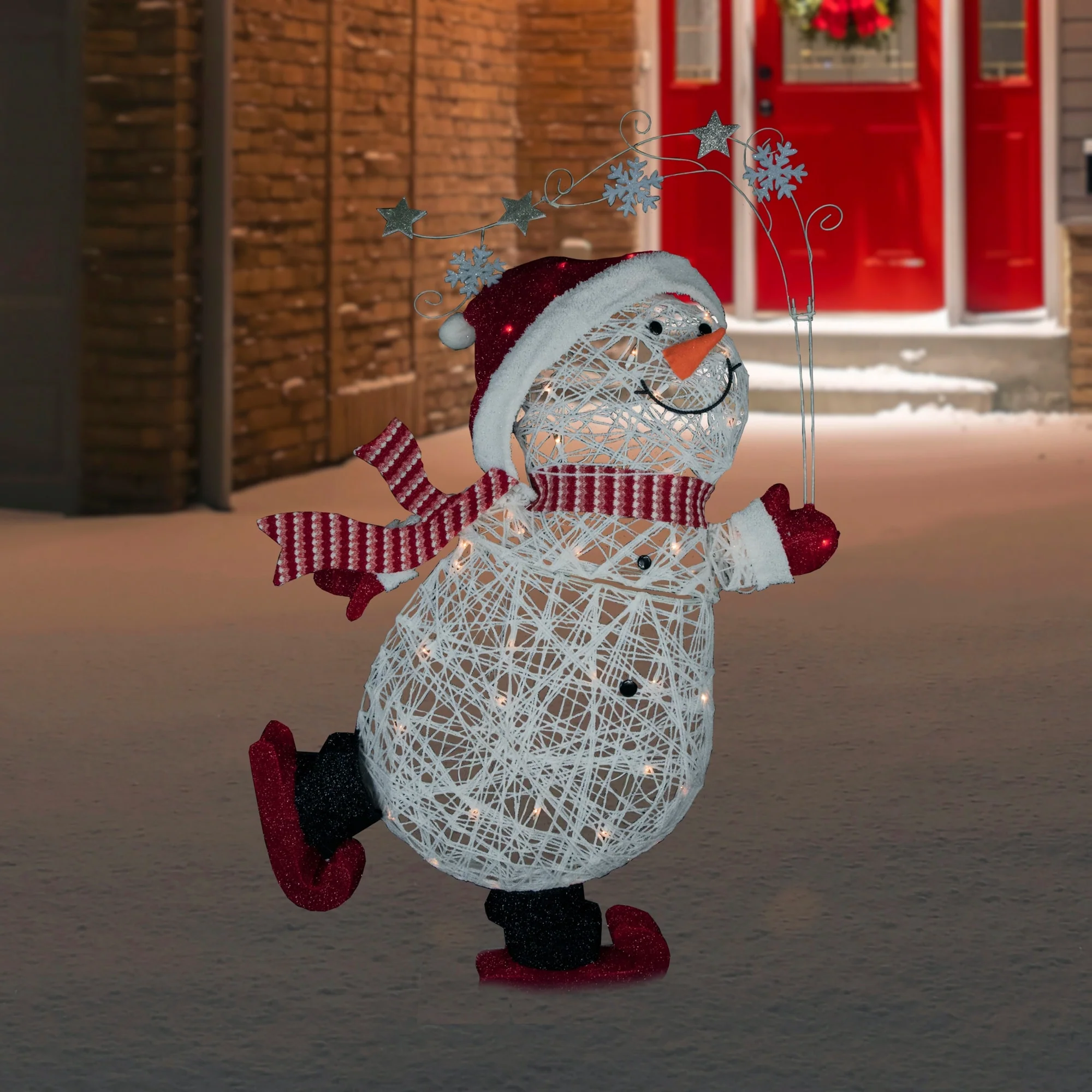 56" Lighted Ice Skating Snowman Outdoor Decoration - White