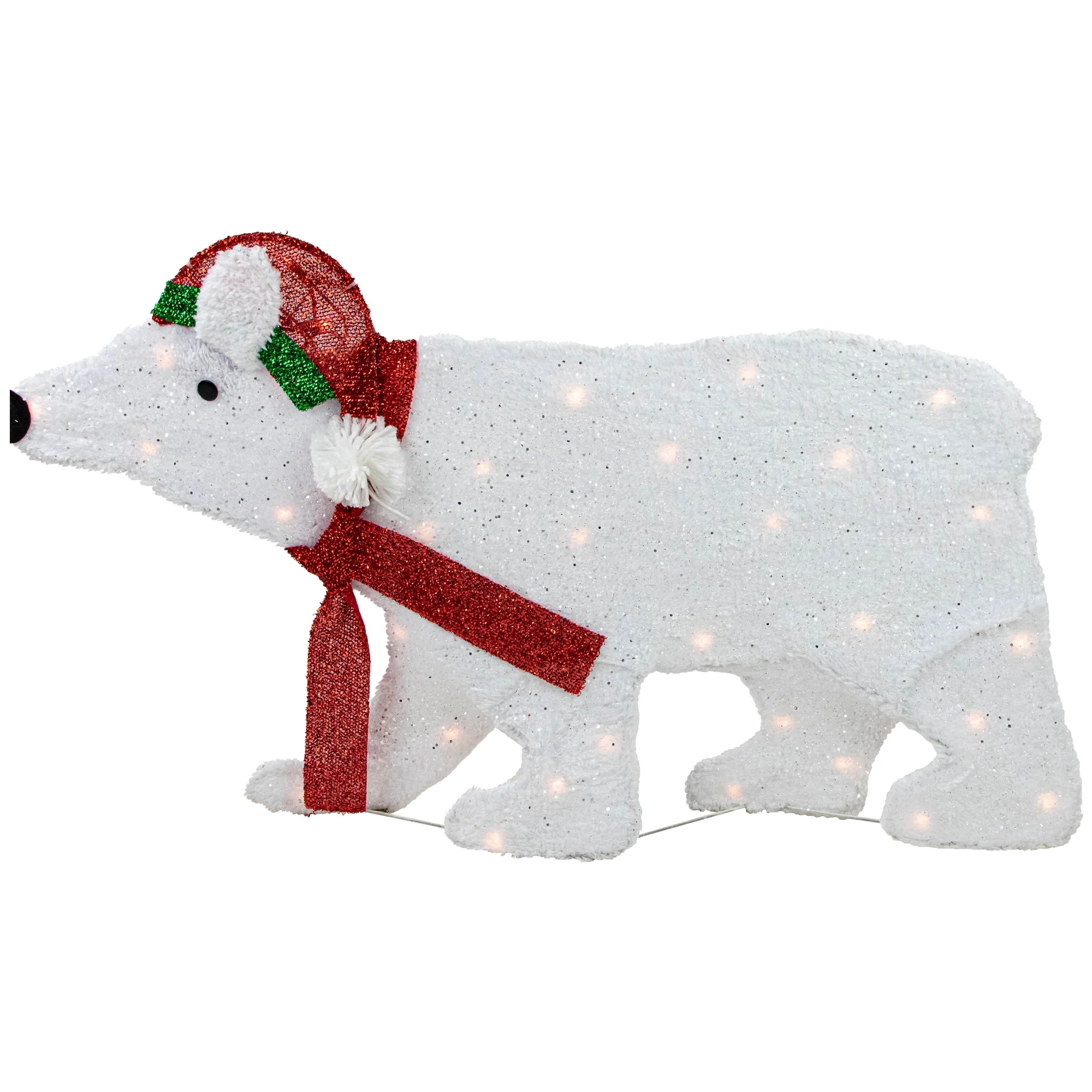 18.5" Lighted 2D Glittered White Polar Bear Outdoor Christmas Decor