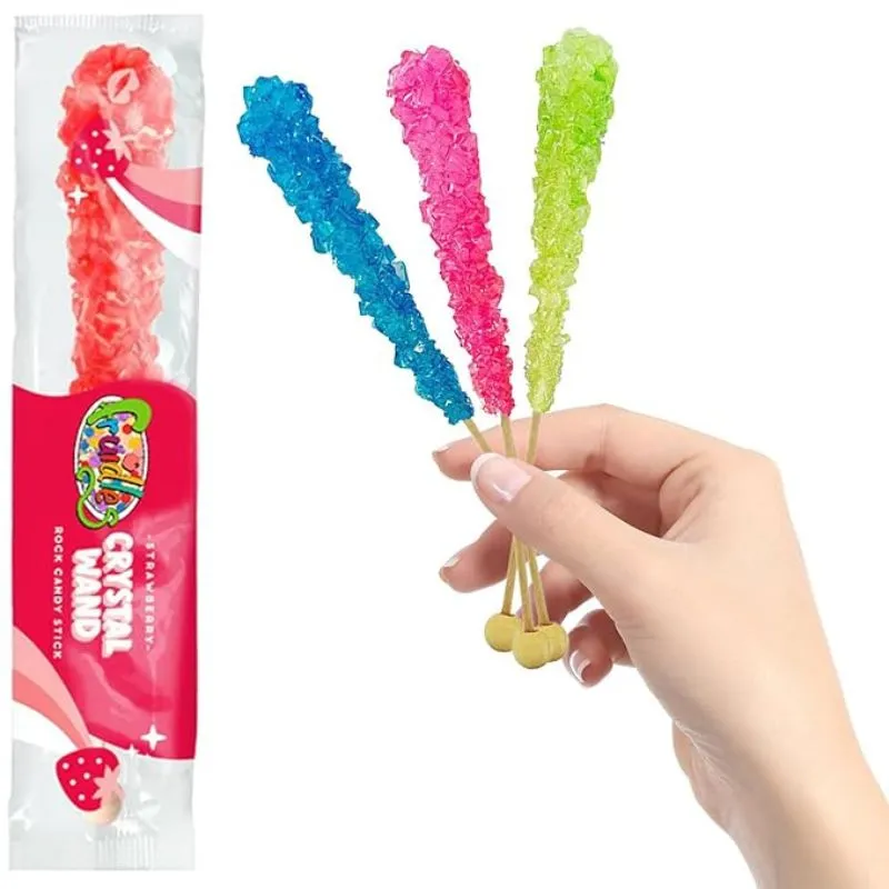 These delicious Rock Candy Lollipops come in a variety of vibrant colors and irresistible flavors, including Strawberry, Grape, Watermelon, Cherry, Blue Raspberry, and Cotton Candy. Perfect for all ages, these individually wrapped 6.5" candy suckers make a sweet treat for students, customers at doctor's offices, restaurants, banks, or even adults. They're ideal for sharing at cookouts, BBQs, tailgates, birthday parties, parades, or as fun party favors for weddings and themed events. Whether you're gifting them to family, friends, coworkers, or yourself, these colorful lollipops are sure to satisfy any sugar craving and make a delightful addition to any celebration!