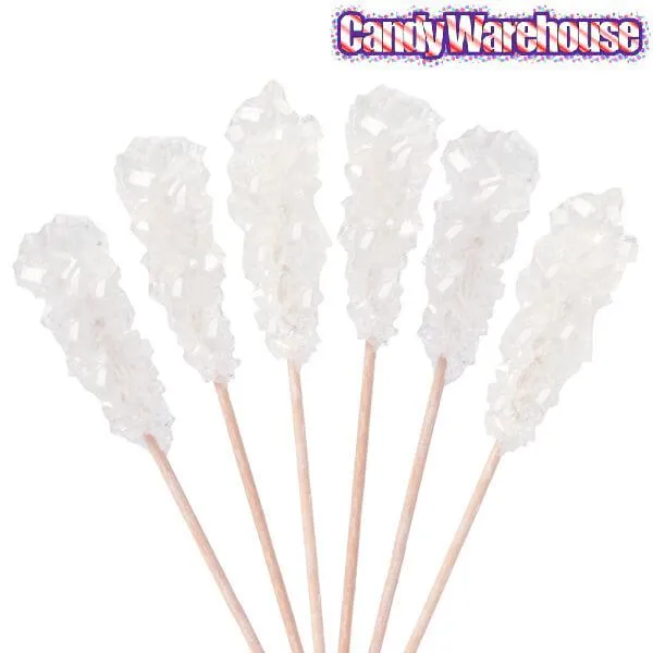 Case contains 72 Wrapped White Rock Candy Swizzle Sticks.