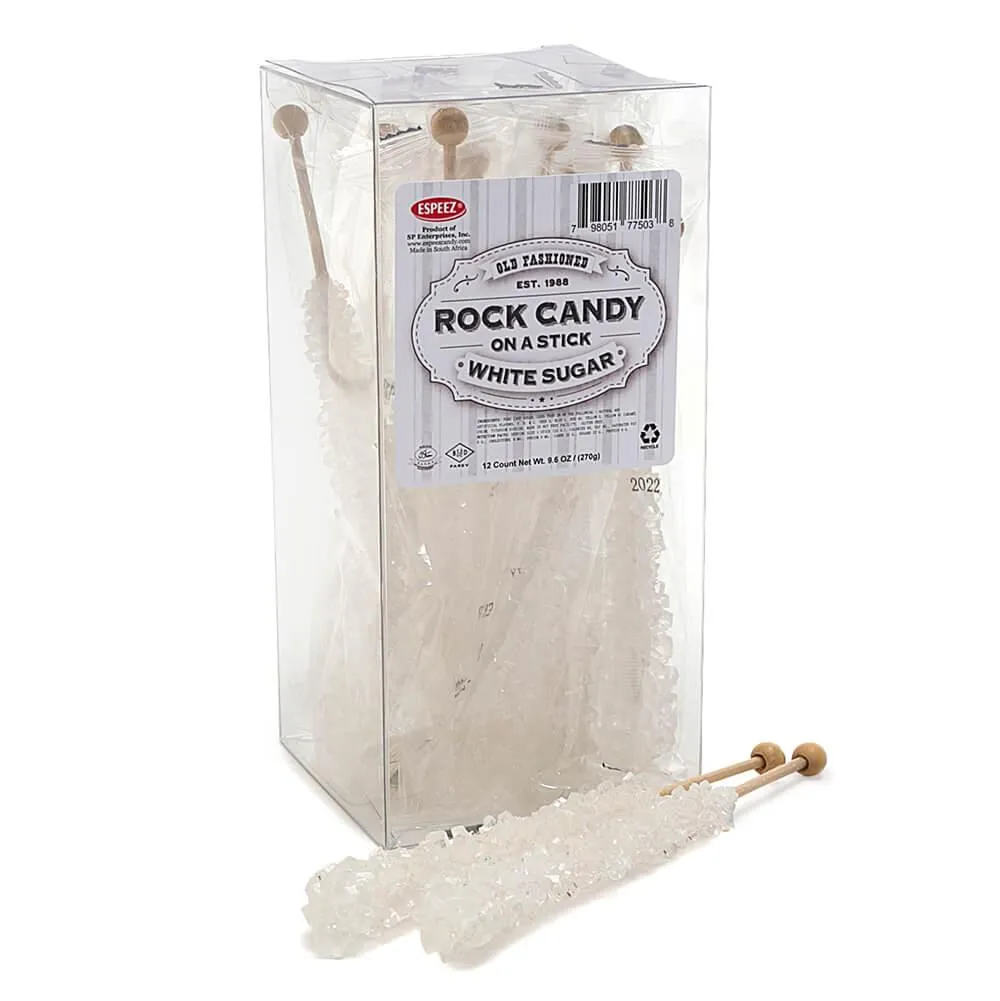 Espeez Rock Candy Crystal Sticks - White Sugar: 12-Piece Box