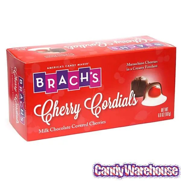 Gift box contains 10 pieces of Brach's Cherry Cordials Chocolate Covered Cherries Candy.