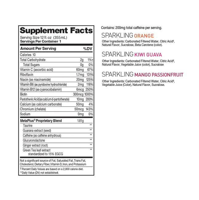 Made with clinically proven ingredients, this carbonated flavor of CELSIUS has the perfect balance of flavor and energy that serves as an awesome pick-me-up for active lifestyles. Re-energize and quench your thirst with the deliciously tropical combination of kiwi and guava. Need an afternoon pick-me-up? Re-focus on your goals and recharge your energy with CELSIUS Sparkling Mango Passionfruit.