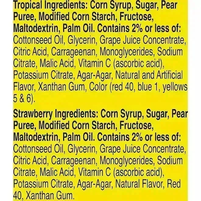 Bursting with real fruit juice and a good source of Vitamin C, this Gushers Strawberry & Tropical Variety Pack brings you delicious Strawberry and Tropical flavors! Perfect for kids and a convenient grab-and-go snack, these juicy treats are gluten-free, gelatin-free, and free of artificial flavors. Pure fruity fun in every pouch!