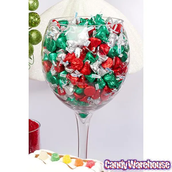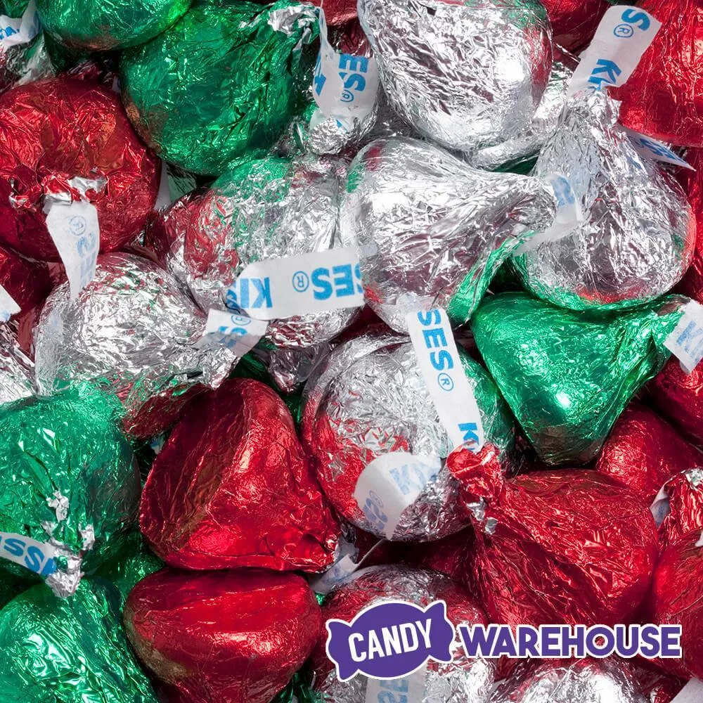 Bag contains 3 pounds of Hershey's Kisses Red, Green, & Silver Christmas Milk Chocolate Candy