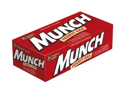 Display box contains 36 Munch Nut Candy Bars, each with a net weight of 1.42 ounce.