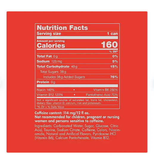 - 114 mg of caffeine per can