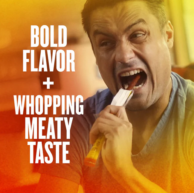 For a satisfying meaty snack, Slim Jim® Original (120 ct.) meat sticks are a spicy bold option. They have the protein to keep you full and powered through the afternoon and satisfy those cravings. Because they're made with real beef, chicken and pork, you can feel good about snacking on Slim Jim snack sticks or putting them in your kid's lunchbox. Satisfy your hunger with this 120-pack of classic Slim Jim beef sticks.