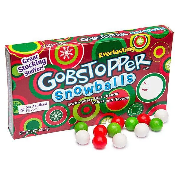 Christmas Everlasting Gobstopper Snowballs Candy 5-Ounce Packs: 12-Piece Box