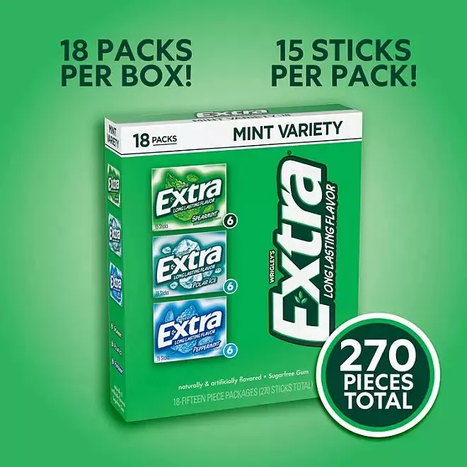 EXTRA Mint Sugar Free Chewing Gum Variety Pack: 18 Pack